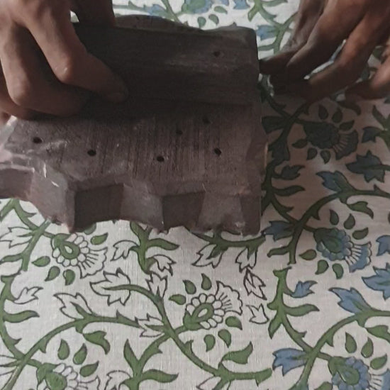 Named after my mother, Rupam - which means “beauty” in Sanskrit - is a heartfelt tribute to maternal love and nurturing presence. The floral motif reflects India’s enduring tradition of nature-inspired block prints, while the palette of soft blue and green carries symbolic depth: blue, a color of serenity and wisdom; green, a symbol of growth and renewal. Together, they echo the comfort, grounding, and gentle strength found in a mother’s embrace.
